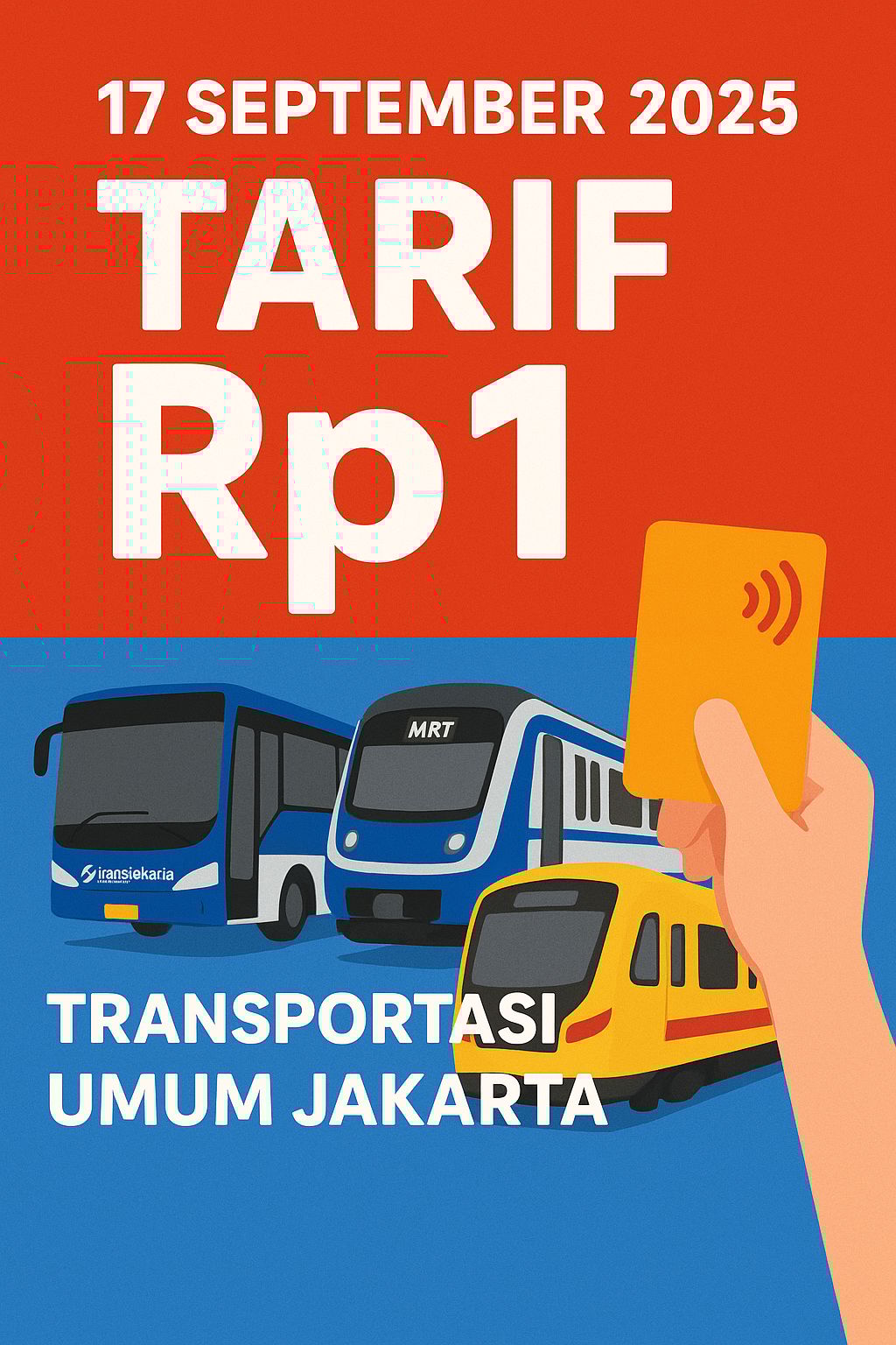 Hari ini (17 Sep 2025) pemerintah DKI Jakarta menetapkan semua tarif transportasi umum Rp 1 aja. Program ini berlaku hanya di hari ini dari jam 00.00 sampai 23.59 WIB untuk Transjakarta, MRT, dan LRT, dibuat khusus untuk merayakan Hari Perhubungan Nasional.